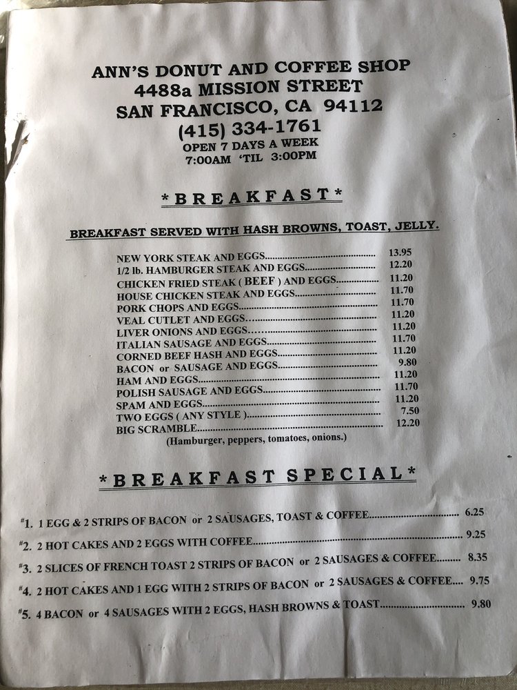 Welcome to Ann’s Doughnut Sandwich Shop, a beloved breakfast gem nestled in the Excelsior District of San Francisco. Known for its generous portions and homey atmosphere, this quaint spot offers a delightful twist on traditional fare with its unique doughnut sandwiches. From hearty bacon and eggs to delectable hotcakes, each dish is cooked to order right before your eyes, ensuring freshness and warmth in every bite.